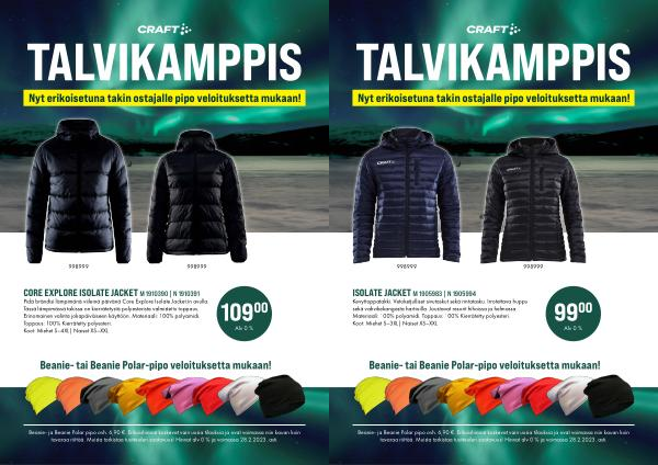 Beanie- ja Beanie Polar pipo ovh . 6,90 €. Erikoishinnat koskevat vain uusia tilauksia ja ovat voimassa niin kauan kuin tavaraa riittää . Muista tarkistaa tuotteiden saatavuus ! Hinnat alv 0 % ja voimassa 28.2.2023 . asti .