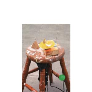 ワルツ -1rpm- / Waltz -1rpm- 2006 wood chair, wooden materials, plastic materials, fabric, rubber ball, motor 33 x 32.3 x 56 (h)cm (13 x 12 3/4 x 22 )