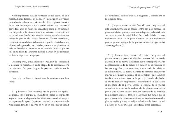 3) Tercera fase: mover el centro de gravedad para el nuevo soporte. el desplazamiento del centro de gravedad en la pierna delantera debe corresponder a un desplazamiento de la pelvis sin perder su alineación en los ejes sagitales y transversales, trasladando la pelvis en el mismo plano. La forma natural de caminar incluye un avance del tronco dejando atrás la pelvis( que también implica una anteversión de la pelvis), cuando de hecho el modo técnico proporciona exactamente lo contrario: el progreso de la pelvis, desde la cadera de la pierna delantera se arrastra la cadera de la pierna trasera. La pelvis que avanza de esta manera permite de no romper la alineación entre el tronco y la pelvis. En modo que la pelvis avance sin forzar o modificar su asentamiento en los planos sagital y transversal( en relación a la línea central o de eje), es necesario que las rodillas estén relajadas.