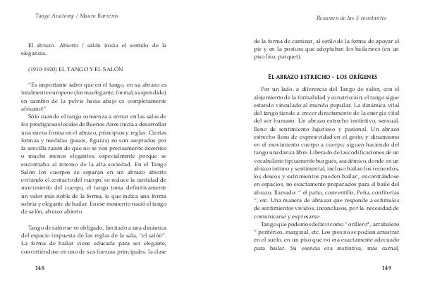 “ Es importante saber que en el tango, en su abrazo es totalmente europeo e( forma elegante, formal, suspendido) en cambio de la pelvis hacia abajo es completamente africano!”
