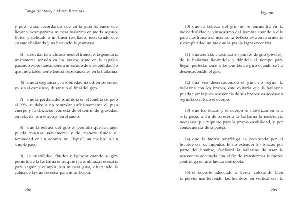 8) que la belleza del giro es permitir que la mujer pueda mostrar suavemente y de manera fluida su feminidad en un adorno, un“ lápiz”, un“ voleo” o un simple paso.
