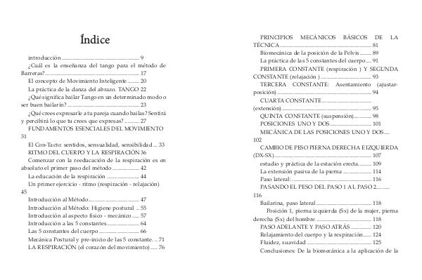 Barreras?................................................................ 17 El concepto de Movimiento Inteligente......... 20 La práctica de la danza del abrazo. TANGO. 22 ¿ Qué significa bailar Tango en un determinado modo o ser buen bailarín?................................................. 23 ¿ Qué crees expresarle a tu pareja cuando bailas? Sentirá y percibirá lo que tu crees que expresas?........... 27 FUNDAMENTOS ESENCIALES DEL MOVIMIENTO