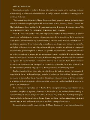 “ La formación profesional de Mauro Barreras se llevó a cabo en una de las instituciones artísticas teatrales más prestigiosas del arte escénico( danza y teatro): Teatro General San Martín de Buenos Aires, Institución de enseñanza superior de danza y de artes escénicas.” EL TANGO LO ESTUDIO CON ANTONIO TODARO Y RAUL BRAVO.