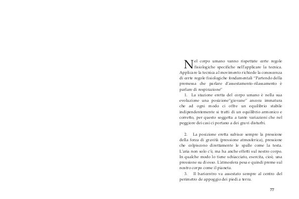 Nel corpo umano vanno rispettate certe regole fisiologiche specifiche nell’ applicare la tecnica. Applicare la tecnica al movimento richiede la conoscenza di certe regole fisiologiche fondamentali“ Partendo della premessa che parlare d’ assestamento-rilassamento è parlare di respirazione”
