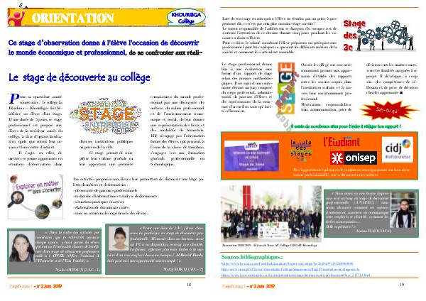 Ce stage d’observation donne à l'élève l'occasion de découvrir
