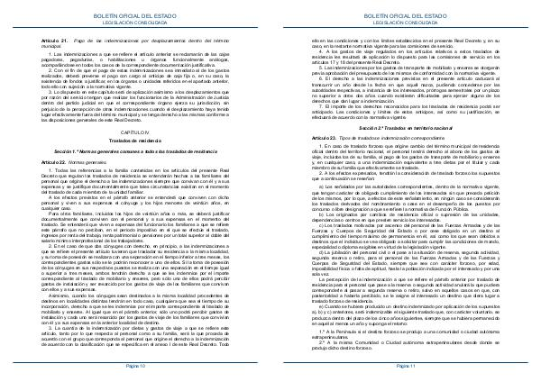 1. En caso de traslado forzoso que origine cambio del término municipal de residencia oficial dentro del territorio nacional, el personal tendrá derecho al abono de los gastos de viaje, incluidos los de su familia, al pago de los gastos de transporte de mobiliario y enseres y, en cualquier caso, a una indemnización equivalente a tres dietas por el titular y cada miembro de su familia que efectivamente se traslade.