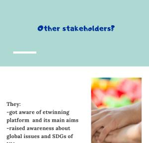 They:-got aware of etwinning platform and its main aims-raised awareness about global issues and SDGs of UN.-got the opportunity to see varied activities that can be done in an eTwinning project