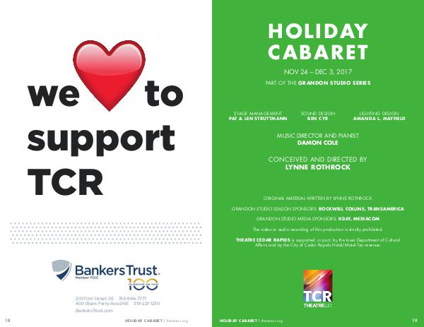 we to support TCR 201 First Street SE 319-896-7777 400 Blairs Ferry Road NE 319-221-1230 BankersTrust.com 18 HOLIDAY CABARET | theatrecr.org