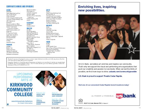 U.S. Bank is proud to support Theatre Cedar Rapids.