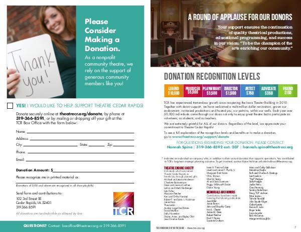 Donate securely online at theatrecr.org/donate, by phone at