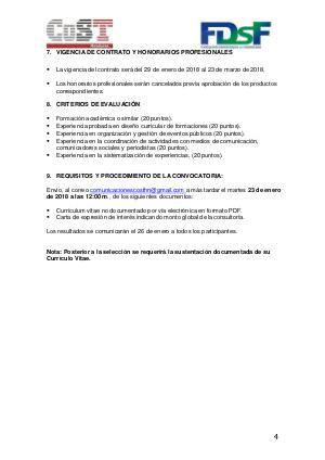 Nota: Posterior a la selección se requerirá la sustentación documentada de su