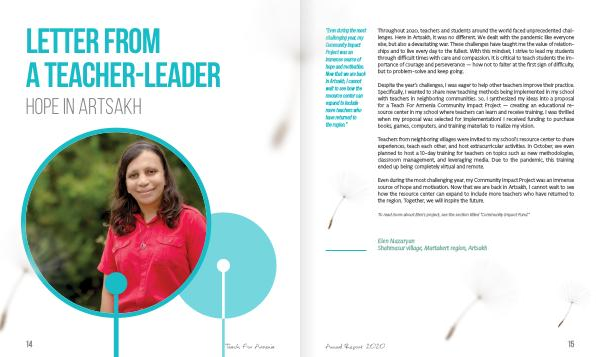 “ Even during the most challenging year , my Community Impact Project was an immense source of hope and motivation . Now that we are back in Artsakh , I cannot wait to see how the resource center can expand to include more teachers who have returned to the region .”