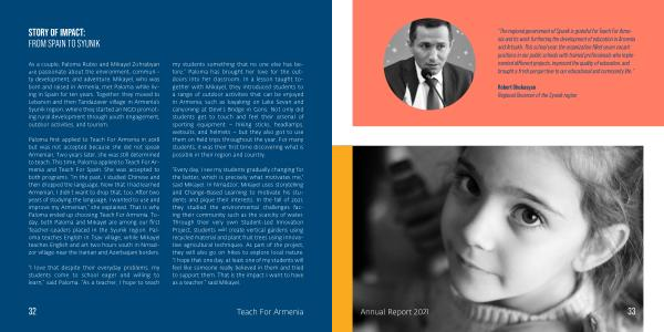 Paloma first applied to Teach For Armenia in 2018 but was not accepted because she did not speak Armenian . Two years later , she was still determined to teach . This time , Paloma applied to Teach For Armenia and Teach For Spain . She was accepted to both programs . “ In the past , I studied Chinese and then dropped the language . Now that I had learned Armenian , I didn ’ t want to drop that , too . After two years of studying the language , I wanted to use and improve my Armenian ,” she explained . That is why Paloma ended up choosing Teach For Armenia . Today , both Paloma and Mikayel are among our first Teacher-Leaders placed in the Syunik region . Paloma teaches English in Tsav village , while Mikayel teaches English and art two hours south in Nrnadzor village near the Iranian and Azerbaijani borders .