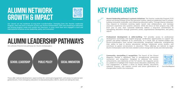 These offer tailored development, opportunities for continued engagement, and access to national and global forums. From emergency education to educational policy reform, alumni are taking the lead.