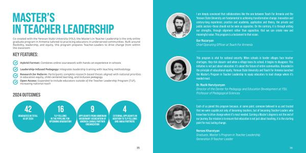 This program is vital for national security. When schools in border villages face teacher shortages, they risk closure— and when a village loses its school, it begins to disappear. This initiative is not just about education; it’ s about the future of entire communities. Grounded in the principle of educational equity, Yerevan State University and Teach For Armenia launched the Master’ s Program in Teacher Leadership to equip educators to lead change where it’ s needed most.