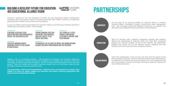 Formed in response to the 2022 blockade of Artsakh, the 405 Educational Alliance Development Foundation was co-founded by Teach For Armenia to promote more resilient, inclusive, and responsive public education systems across Armenia and the diaspora.