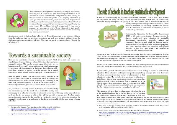 8 Wendy Church and Laura Skelton, Sustainability Education in K-12 Classrooms https:// www. facingthefuture. org / Portals / 0 / Documents / Articles / Informational % 20Papers / Sustainability % 20Educatio n % 20in % 20K-12 % 20Classrooms. pdf( assessed January 4 th 2016) Any reference to this publication will be as Church and Skelton.