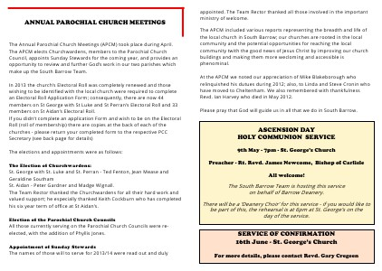 The Annual Parochial Church Meetings (APCM) took place during April.