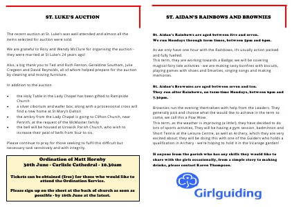 We are grateful to Rory and Wendy McClure for organising the auction they were married at St Luke’s 24 years ago!