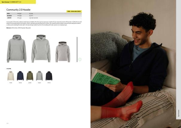 Community 2.0 Hoodie combines a laid-back yet athletic fit with a sporty expression , ideal for those relaxed moments off the pitch . Crafted from a soft blend of recycled polyester and organic cotton , and featuring a brushed inner surface , this casual hoodie provides a smooth touch and great comfort , continuously elevating the team spirit . Its clean design makes it perfect for branding with club , sponsor or company logos .