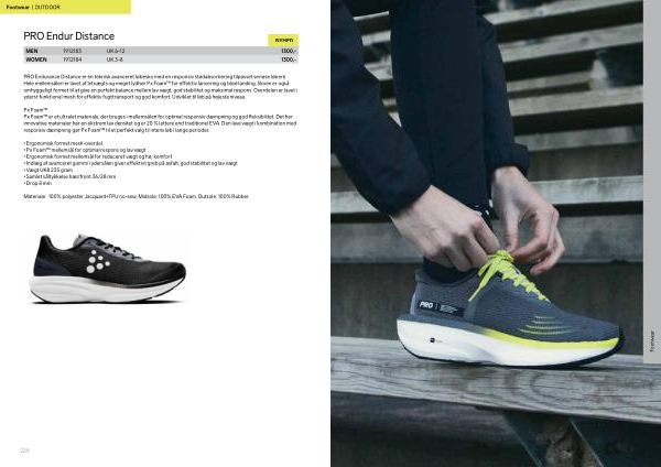 PRO Endurance Distance er en teknisk avanceret løbesko med en responsiv stødabsorbering tilpasset seriøse løbere . Hele mellemsålen er lavet af letvægts og meget lydhør Px Foam™ for effektiv lancering og blød landing . Skoen er også omhyggeligt formet til at give en perfekt balance mellem lav vægt , god stabilitet og maksimal respons . Overdelen er lavet i yderst funktionel mesh for effektiv fugttransport og god komfort . Udviklet til løb på højeste niveau .