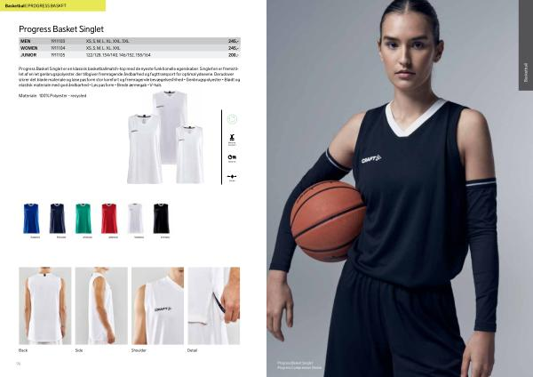 Progress Basket Singlet er en klassisk basketballmatch-top med de nyeste funktionelle egenskaber . Singlet ’ en er fremstillet af en let genbrugspolyester , der tilbgiver fremragende åndbarhed og fugttransport for optimal ydeevne . Derudover sikrer det bløde materiale og løse pasform stor komfort og fremragende bevægelsesfrihed • Genbrugspolyester • Blødt og elastisk materiale med god åndbarhed • Løs pasform • Brede ærmegab • V-hals