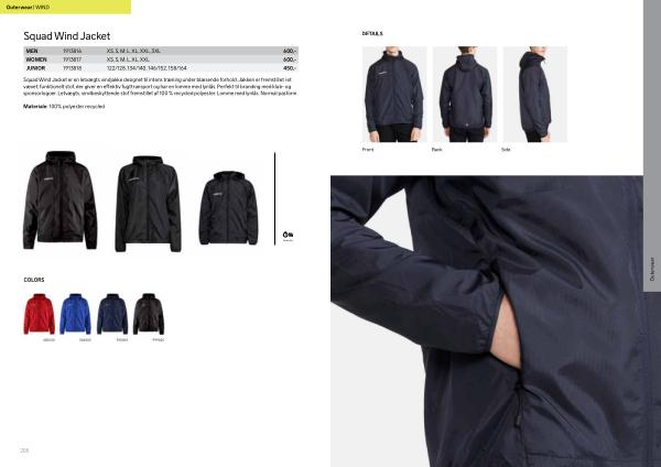 Squad Wind Jacket er en letvægts vindjakke designet til intens træning under blæsende forhold . Jakken er fremstillet i et vævet , funktionelt stof , der giver en effektiv fugttransport og har en lomme med lynlås . Perfekt til branding med klub- og sponsorlogoer . Letvægts , vindbeskyttende stof fremstillet af 100 % recycled polyester . Lomme med lynlås . Normal pasform .