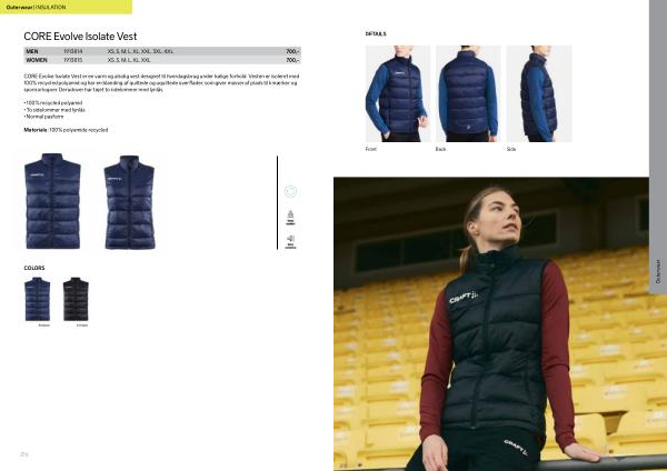 CORE Evolve Isolate Vest er en varm og alsidig vest designet til hverdagsbrug under kølige forhold . Vesten er isoleret med 100 % recycled polyamid og har en blanding af quiltede og uquiltede overflader , som giver masser af plads til kmærker og sponsorlogoer . Derudover har tøjet to sidelommer med lynlås .