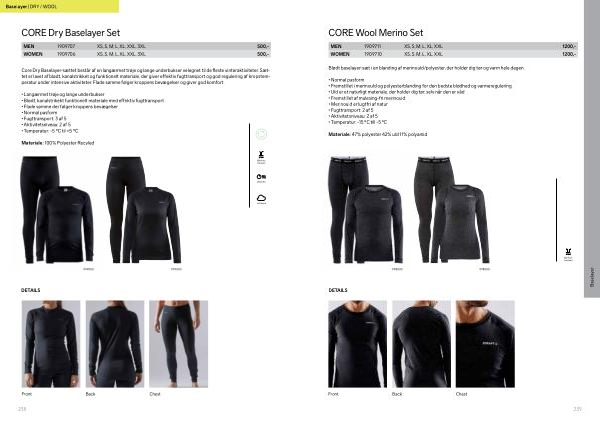 Core Dry Baselayer-sættet består af en langærmet trøje og lange underbukser velegnet til de fleste vinteraktiviteter . Sættet er lavet af blødt , kanalstrikket og funktionelt materiale , der giver effektiv fugttransport og god regulering af kropstemperatur under intensive aktiviteter . Flade sømme følger kroppens bevægelser og giver god komfort .