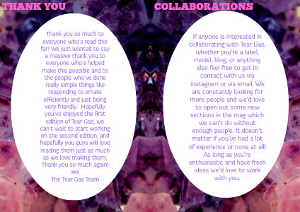 Thank you so much to everyone who's read this far! We just wanted to say a massive thank you to everyone who's helped make this possible and to the people who've done really simple things like responding to emails efficiently and just being very friendly. Hopefully you've enjoyed the first edition of Tear Gas, we can't wait to start working on the second edition, and hopefully you guys will love reading them just as much as we love making them. Thank you so much again!