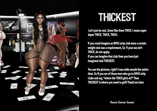 If you could imagine an IMVU strip club were a certain weight size was a requirement, So if your ass ain't THICK, do not apply.