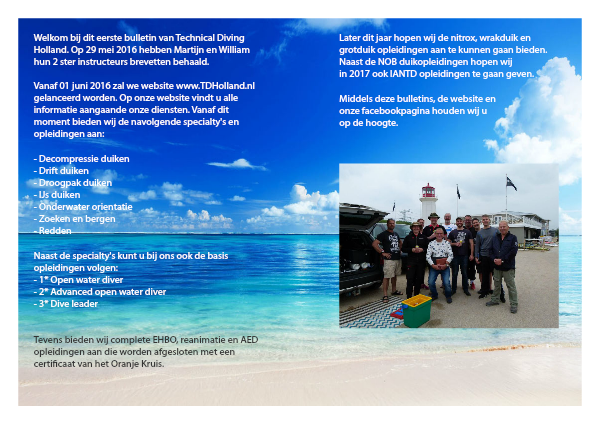 Later dit jaar hopen wij de nitrox, wrakduik en grotduik opleidingen aan te kunnen gaan bieden.