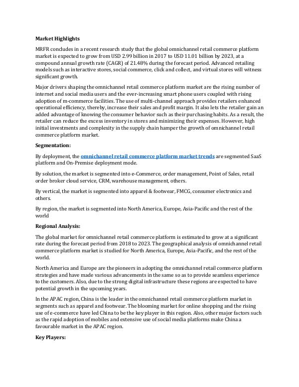 MRFR concludes in a recent research study that the global omnichannel retail commerce platform