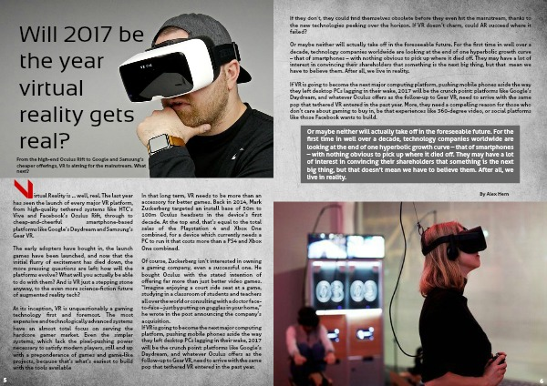 If VR is going to become the next major computing platform, pushing mobile phones aside the way they left desktop PCs lagging in their wake, 2017 will be the crunch point: platforms like Google’s Daydream, and whatever Oculus offers as the follow-up to Gear VR, need to arrive with the same pop that tethered VR entered in the past year.