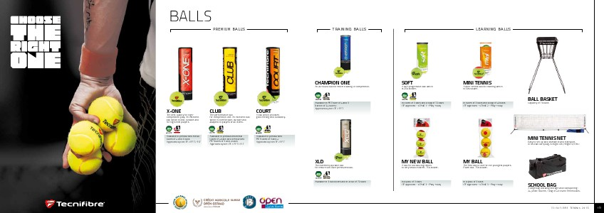 balls PREMIUM BALLS X-ONE for highThe best quality club ball The performance COURT A ball which provides Available in pressurized metal tubes of 4 and 3 balls Approved by the ITF / FFT / FIT Available in pressurized metal tubes of 4 balls and pressurized PET tubes of 3 and 4 balls Approved by the ITF / FFT / FIT Available in pressurized PET tubes of 3 and 4 Approved by the ITF / FFT competition play. An excellent ball which is fast, durable and for high level players. for competition use. An excellent ball which is comfortable, durable and adapted to players of all levels. good feeling and durability.