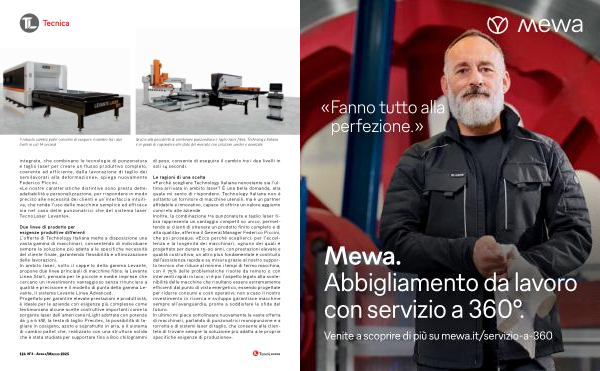 Le ragioni di una scelta « Perché scegliere Technology Italiana nonostante sia l’ ultima arrivata in ambito laser? È una bella domanda, alla quale mi sento di rispondere. Technology Italiana non è soltanto un fornitore di macchine utensili, ma è un partner affidabile e innovativo, capace di offrire un valore aggiunto concreto alle aziende. Inoltre, la combinazione tra punzonatura e taglio laser fibra rappresenta un vantaggio competitivo unico, permettendo ai clienti di ottenere un prodotto finito completo e di alta qualità », afferma il General Manager Federico Piccini, che poi prosegue: « Ecco perché sceglierci: per l’ eccellenza e la longevità dei macchinari, ognuno dei quali è progettato per durare 15-20 anni, con prestazioni elevate e qualità costruttiva; un altro plus fondamentale è costituito dall’ assistenza rapida e su misura grazie al nostro supporto tecnico che riduce al minimo i tempi di fermo macchina, con il 75 % delle problematiche risolte da remoto o con interventi rapidi in loco; vi è poi l’ aspetto legato alla sostenibilità delle macchine che risultano essere estremamente efficienti dal punto di vista energetico, essendo progettate per ridurre consumi e costi operativi: non a caso il nostro investimento in ricerca e sviluppo garantisce macchine sempre all’ avanguardia, pronte a soddisfare le sfide del futuro. In ultimo mi piace sottolineare nuovamente la vasta offerta di macchinari, parlando di punzonatrici monopunzone e a torretta e di sistemi laser di taglio, che consente alla clientela di trovare sempre la soluzione più adatta alle proprie specifiche esigenze di produzione ».