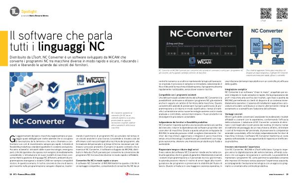Indipendenza dai fornitori e flessibilità produttiva NC Converter risponde quindi a una necessità sempre più sentita dal mercato: ridurre la dipendenza dai software proprietari dei costruttori di macchine. Grazie a questa soluzione sviluppata da WiCAM, le aziende possono infatti scegliere liberamente i fornitori dei macchinari, aggiornare o integrare il parco macchine senza vincoli tecnologici e pianificare gli investimenti con maggiore autonomia, ottenere una transizione produttiva più fluida e sostenibile.
