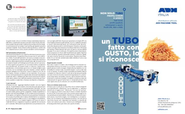 I costi ripensati « Parliamo di costi,- aggiunge il direttore vendite- non con i fogli di calcolo, ma pensando ai sistemi. Una macchina che opera al 90 % della propria capacità non è necessariamente“ efficiente” se crea colli di bottiglia a valle. Massimizzare la produzione della macchina in modo isolato spesso gonfia i magazzini, ritarda le spedizioni e genera caos nell’ assemblaggio. E non si tratta solo di una questione di spazio o di logistica, ma anche di una questione finanziaria. Un eccesso di semilavorati si traduce direttamente in un aumento dei costi di gestione delle scorte, in una maggiore immobilizzazione di capitale e in un impatto negativo sul flusso di cassa. Il materiale fermo in magazzino è quindi un capitale che non lavora per le aziende. Ottimizzare la produttività di una postazione di lavoro a scapito dell’ intero flusso può aumentare un singolo KPI, ma mina l’ agilità finanziaria dell’ azienda. Ciò di cui abbiamo bisogno è, invece, l’ efficienza del flusso, non l’ efficienza locale. Gli ecosistemi di produzione end-to-end ottimizzano l’ insieme, non le parti. Creano una logica di produzione che allinea il takt time, l’ efficienza del nesting, il bilanciamento del carico di lavoro e la tracciabilità dei pezzi in un unico continuum. Ciò significa meno rilavorazioni, meno sorprese e un ritorno dell’ investimento più rapido. Significa anche resilienza: quando la domanda cambia, il sistema si adatta, non solo in teoria, ma anche in esecuzione. Questa è vera flessibilità. E in un mercato caratterizzato dalla volatilità, è l’ unica cosa che conta davvero ».