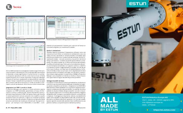 storico delle lavorazioni accompagnano il pezzo lungo l’ intero processo produttivo, eliminando la ricerca manuale delle informazioni e riducendo in modo significativo il rischio di errori. In una tipica situazione operativa in officina, come l’ arrivo di una richiesta urgente da parte di un cliente importante, Production Manager consente di verificare rapidamente la disponibilità di materiale, stimare i tempi e ripianificare la produzione. Il sistema raccoglie dati in tempo reale dalle macchine e li rende accessibili a tutti i reparti coinvolti: produzione, ufficio tecnico e area commerciale.