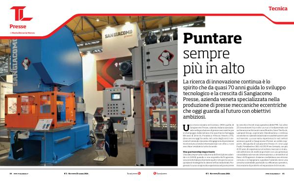 La ricerca di innovazione continua è lo spirito che da quasi 70 anni guida lo sviluppo tecnologico e la crescita di Sangiacomo Presse , azienda veneta specializzata nella produzione di presse meccaniche eccentriche che oggi guarda al futuro con obiettivi ambiziosi .