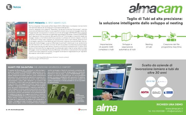 Rivit ha conquistato il terzo posto ai Best Award 2025 di Blechexpo, il prestigioso riconoscimento internazionale dedicato alle tecnologie per la lavorazione della lamiera. Il premio, assegnato nella categoria“ Separating, Joining and Connecting Technologies”, valorizza l’ eccellenza dell’ azienda emiliana e la sua capacità di innovare nei processi di fissaggio industriale. Protagonista del riconoscimento è il sistema di controllo del fissaggio CONTROLRIV Gen3, sviluppato da Rivit per ottimizzare l’ efficienza e la qualità degli assemblaggi automatizzati. Il sistema CONTROLRIV Gen3 rappresenta l’ ultima evoluzione della gamma Rivit per il monitoraggio e la gestione digitale del fissaggio. Grazie a un’ architettura elettronica avanzata e a software di controllo integrato, consente di: monitorare in tempo reale i parametri di installazione dei rivetti e inserti filettati; prevenire errori di montaggio e garantire la tracciabilità dei dati di processo; migliorare la produttività delle linee automatizzate di assemblaggio. La giuria di Blechexpo ha premiato il sistema per le sue caratteristiche tecniche distintive e per il contributo concreto che offre alla qualità e sicurezza dei processi produttivi nel settore della lavorazione della lamiera. Durante la cerimonia di premiazione del 21 ottobre 2025 alla fiera di Stoccarda, Rivit ha rappresentato l’ eccellenza del made in Italy nel campo delle tecnologie di fissaggio. Come ha sottolineato Francesco Montanari, CEO di Rivit, il riconoscimento internazionale“ conferma la nostra capacità di innovare, coniugando automazione e digitalizzazione per rispondere alle esigenze reali del settore produttivo”.