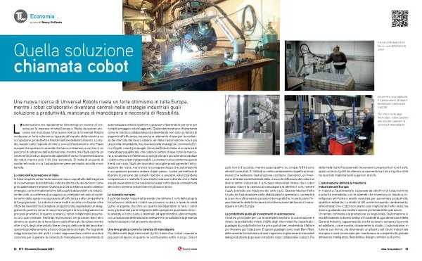 automatizzare attività ripetitive o gravose e liberando le persone per compiti a maggior valore aggiunto. Questi dati mostrano chiaramente come la robotica collaborativa stia diventando non solo un fattore di supporto all’ efficienza, ma anche un elemento chiave per la resilienza del mercato del lavoro italiano. « In Italia l’ automazione non è più una scelta rimandabile, ma una necessità strategica », commenta Enrico Rigotti, country manager Universal Robots Italia. « La carenza di manodopera qualificata, che colpisce settori chiave come la meccanica, la saldatura e l’ elettronica, spinge sempre più aziende a valutare i cobot come alleati indispensabili. La nostra ricerca conferma questo trend: non solo l’ 84 % dei lavoratori accoglie positivamente l’ introduzione dei robot, ma cresce la consapevolezza che automazione e occupazione possano andare di pari passo. I cobot permettono di liberare le persone dai compiti ripetitivi e usuranti, valorizzandone competenze e creatività. È una trasformazione culturale che in Italia sta già avvenendo e che sarà decisiva per rafforzare la competitività del nostro sistema industriale nei prossimi anni ».