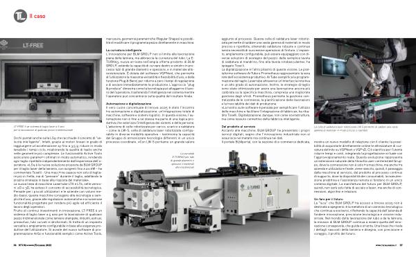 mostra un nuovo modello di relazione con il cliente: la possibilità di acquistarle direttamente online le attrezzature di curvatura definite su VGPNext o VGP3D. Ciò significa per l’ utente ridurre tempi e costi, integrando la progettazione virtuale con l’ approvvigionamento reale. Questa evoluzione rappresenta un’ estensione naturale della filosofia user-centered del Gruppo, dove la connessione non è solo tra macchine, ma anche tra azienda e utilizzatore finale: viene sancito, quindi, il passaggio dalla macchina al servizio, dal prodotto al processo continuo di supporto, dove la disponibilità dei consumabili, la manutenzione predittiva e l’ assistenza remota si fondono in un unico sistema digitale. La manifattura del futuro per BLM GROUP, quindi, non sarà solo fatta di acciaio e laser, ma anche di connessioni, algoritmi e relazioni.