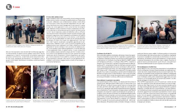 Il fronte della saldatura laser Oggi la saldatura laser sta conoscendo una seconda giovinezza, grazie anche ai settori nei quali la qualità estetica è il fattore più ricercato. « Abbiamo una collaborazione valida e molto attiva con Tecnosens: siamo due aziende indipendenti che, per tradizione, distribuiscono marchi giapponesi in esclusiva e ci siamo trovati: noi come applicatori e loro come fornitori di sorgenti laser. Abbiamo messo insieme le nostre competenze: loro hanno un laboratorio estremamente performante, facciamo prove su tutti i tipi di materiale, analisi di fattibilità e altro e offriamo una soluzione molto interessante. Grazie a questa sinergia, oggi possiamo supportare clienti impegnati su produzioni di medie e grandi serie. Per le piccole serie, a mio avviso, i costi del laser non sono ancora abbordabili ma siamo pronti all’ avanzamento tecnologico. È chiaro che il laser non rappresenta la“ cura” per tutti i mali: il giunto va pensato e progettato apposta per la saldatura laser. Adattare a tutti i costi un giunto progettato per la saldatura ad arco per realizzarlo con il laser comporta un inutile dispendio di risorse e tempo: il vero processo di saldatura a laser, a mio giudizio, parte dalla progettazione. Il mondo dell’ auto ci sta insegnando molto, in questo senso: ci sono componenti che si saldano massicciamente a laser perché c’ è stato a monte un lavoro di progettazione specifico per questa tecnologia mentre per alcuni componenti, come le sospensioni, per esempio, l’ unica soluzione è l’ arco elettrico, anche su volumi elevati. È una questione culturale: uffici tecnici e di progettazione dovrebbero confrontarsi maggiormente a livello di tecnologie …», commenta Santamaria.
