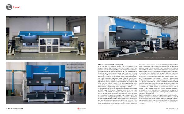 Il futuro e l’ importanza di essere pronti In un mercato, come quello attuale, che si caratterizza per frequenti cambi di produzione e lotti sempre più piccoli, una tecnologia intelligente come BendAI sembra inserirsi alla perfezione. « L’ 80 % dei nostri clienti sono terzisti. Siamo specializzati nel fare macchine su misura: oggi il mercato richiede sempre più differenziazione. I nostri clienti hanno bisogno di distinguersi offrendo più flessibilità ma ne hanno bisogno perché i loro clienti fanno prodotti sempre diversi per differenziarsi dalla concorrenza. È un mondo che richiede continuamente cose diverse. E non ci sono grandi volumi bensì piccole serie: bisogna sapersi muovere con velocità ed efficienza in un contesto nel quale non c’ è tanto tempo né tanto spazio. E i margini sono sempre più piccoli », aggiunge Guderzo. Una sfida che non riguarda solo l’ innovazione tecnologica, ma anche la capacità di visone e di adattamento ai mutamenti del mercato. La flessibilità tecnologica, del resto, è solo una parte dell’ equazione: serve anche la prontezza di chi guida l’ azienda per affrontare un futuro sempre più imprevedibile. « Il futuro possiamo solo immaginarlo, provando a tracciare delle strade da percorrere per raggiungere i nostri obiettivi. Ci troviamo in una fase di fortissimi cambiamenti, dettati dal contesto competitivo e dal mercato del lavoro. Immaginare il futuro non è facile, anche perché negli ultimi anni sono successe tante cose che hanno stravolto i piani, a cominciare dalla pandemia o dalla guerra in Ucraina che ha fatto lievitare i prezzi. In Gasparini abbiamo sempre avuto la spinta a fare cose diverse: ci siamo sempre distinti. Anche in occasione del nostro cinquantesimo anniversario siamo riusciti a rinnovare il nostro DNA mantenendo la nostra identità: tanto tempo fa abbiamo scelto chi volevamo essere e abbiamo mantenuto questa coerenza fino ad oggi. In un contesto nel quale siamo continuamente messi a dura prova dagli eventi, riuscire a tenere il timone dritto anche controvento è per me un grande valore. Ho appreso una lezione molto bella da Andrea Pontremoli, amministratore delegato della Dallara Automobili: oggi se vuoi competere non devi essere preparato, devi essere pronto. Un infermiere, su un’ ambulanza, quando si reca ad assistere qualcuno non sa cosa si troverà davanti, è pronto a tutto: di qualsiasi emergenza si tratti, sa come deve agire. La cosa importante oggi non è essere sempre più preparati ma essere pronti perché domani potrebbe cambiare tutto. Ogni anno dobbiamo affrontare qualcosa di totalmente inaspettato: questa è la vera sfida. In Gasparini abbiamo scelto di muoverci in questo modo e sono convinto che questo atteggiamento, in futuro, ci premierà perché ci stiamo allenando per essere pronti e non per essere preparati », conclude Andrea Guderzo. www. techlamiera. it