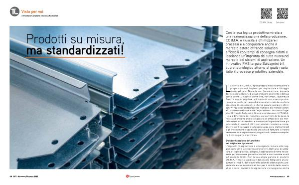 Con la sua logica produttiva mirata a una razionalizzazione della produzione, CO. IM. A. è riuscita a ottimizzare i processi e a conquistare anche il mercato estero offrendo soluzioni affidabili con tempi di consegna ridotti e lasciando un’ impronta del tutto nuova nel mercato dei sistemi di aspirazione. Un innovativo FMS targato Salvagnini è il cuore tecnologico attorno al quale ruota tutto il processo produttivo aziendale.