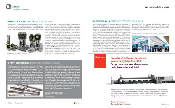 Linea di utensili a torretta alta di Matrix Tools dell’ offerta aziendale e si distingue per elevata compatibilità con utensili di diversi costruttori; robustezza e affidabilità nelle lavorazioni più gravose; personalizzazione delle geometrie in base alle esigenze del cliente. All’ interno della gamma, la serie Premium unisce prestazioni elevate e semplicità d’ uso, mentre la serie Classic offre la soluzione più conveniente anche per lavorazioni gravose. I portapunzoni B, C, D ed E sono compatibili con punzoni integrali e con inserti iEM; gli estrattori, disponibili in versione tradizionale o guidata, garantiscono stabilità e precisione costante nel tempo. Tra le novità presentate a Blechexpo spicca MultiJET. In continuità con la logica del sistema MultiMATRIX, MultiJET alloggia tre utensili indipendenti in una singola stazione D e consente lavorazioni puntuali come bombature, svasature, estrusioni e pretranci; deformazioni in continuo come offset, nervature e pincher. Il multitool MultiMATRIX, parte integrante della gamma a torretta alta, amplia ulteriormente la modularità: può contenere da 4 a 16 utensili con diametri da 12,7 a 31,7 mm, tutti rotanti, indexabili e personalizzabili. L’ obiettivo è uno: ridurre i tempi di attrezzaggio e massimizzare la continuità operativa delle punzonatrici.