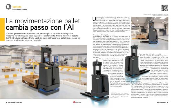 L’ ultima generazione della robotica è sempre più al servizio della logistica moderna per ottimizzare costi e garantire sostenibilità. Mobile Industrial Robots( MiR) introduce MiR1200 Pallet Jack, in grado di trasportare pallet fino a 1.200 kg in modo intelligente, sicuro e flessibile.
