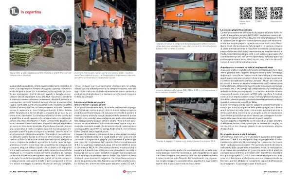 La soluzione ideale per piegare lamiere da 8 m e spesse 20 mm « L’ acquisto che abbiamo fatto, di recente, nell’ impianto di piegatura Ermaksan rientra a pieno titolo in questa nuova vocazione produttiva dell’ azienda poiché avevamo necessità di portare al nostro interno anche la fase di piegatura delle lamiere di grosso formato, che consideriamo strategica per quello che andiamo a fare. Oggi possiamo piegare lamiere lunghe fino a 8 m con spessore di 20 mm e abbiamo sotto controllo sia la qualità e la precisione dei manufatti piegati che le tempistiche di realizzazione e consegna delle carpenterie », spiega Andrea Santi, che in Italiana Keller Grigliati segue la produzione. L’ impianto Ermaksan si compone di due presse piegatrici idrauliche sincronizzate della serie Sped-Bend a 7 assi ciascuna con 4.100 mm di lunghezza di piega e 400 tonnellate di potenza per una capacità complessiva dell’ impianto di 800 tonnellate e più di 8 m di lunghezza massima di piega, entrambe dotate di tavola di centinatura WILA. « In precedenza davamo in outsourcing la piegatura di questo tipo di lamiere così importanti, ma vista la frequenza con cui ci siamo imbattuti in questo tipo di esigenza e la sua strategicità abbiamo ritenuto fosse utile dotarci in forma diretta di una soluzione di piegatura che ci rendesse autonomi anche da questo punto vista. Abbiamo quindi fatto un’ attenta analisi di mercato, al termine della quale abbiamo scelto CO. MA. F.