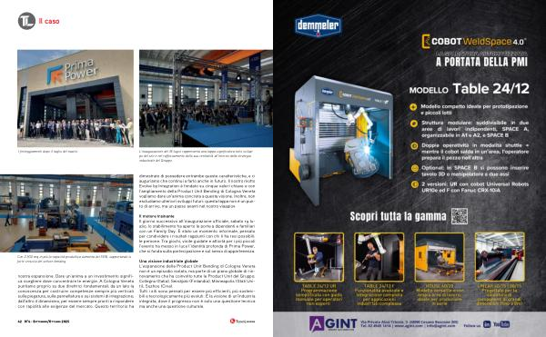 Una visione industriale globale L’ espansione della Product Unit Bending di Cologna Veneta non è un episodio isolato, ma parte di un piano globale di rinnovamento che ha coinvolto tutte le Product Unit del Gruppo: Collegno( Italia), Seinäjoki( Finlandia), Minneapolis( Stati Uniti), Suzhou( Cina). Tutti i siti sono pensati per essere più efficienti, più sostenibili e tecnologicamente più evoluti. È la visione di un’ industria integrata, dove il progresso non è solo una questione tecnica ma anche una questione culturale.